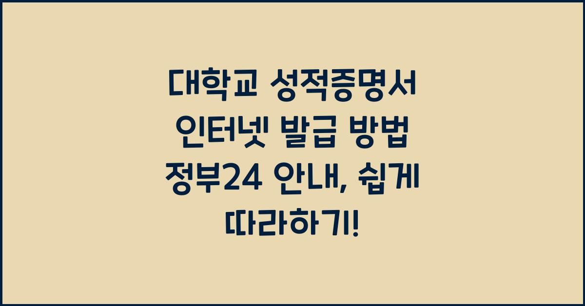 학교에서 성적증명서가 왜 필요한가?대학교를 다니면서 성적증명서를 요청하는 일은 생각보다 잦기도 하고, 한편으로는 그 필요성에 대해 의문을 가질 수도 있습니다. 졸업 후 취업이나 대학원 진학시 본인의 학업 성과를 증명해야 하는 단계에서는 반드시 성적증명서가 필요합니다. 여러 사람들이 속한 이런 과정에서, 성적증명서는 개인의 학문적 배경을 효과적으로 나타내주는 중요한 서류입니다. 그러나 막상 성적증명서를 받으려면 복잡한 절차나 시간 소요 때문에 마음이 아플 때도 있습니다. 그것을 해소할 수 있도록 도와주는 것이 바로 대학교 성적증명서 인터넷 발급 방법 정부24 안내입니다. 이 방법을 통해 오프라인에서의 긴 대기 시간이나 많은 서류 작업을 피할 수 있어서 정말 유용합니다.대학교 성적증명서 인터넷 발급 방법 정..